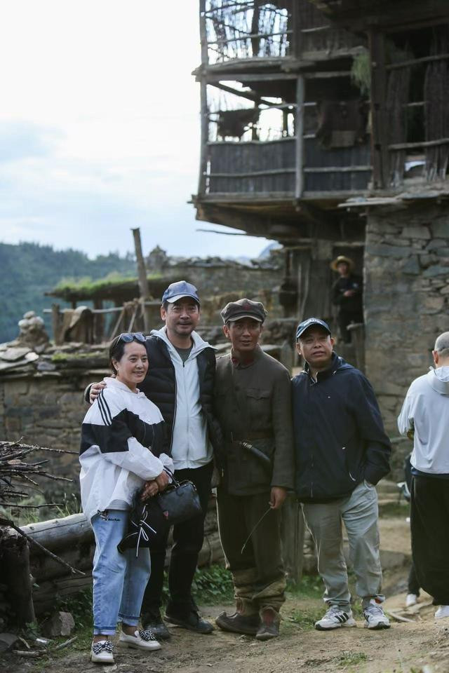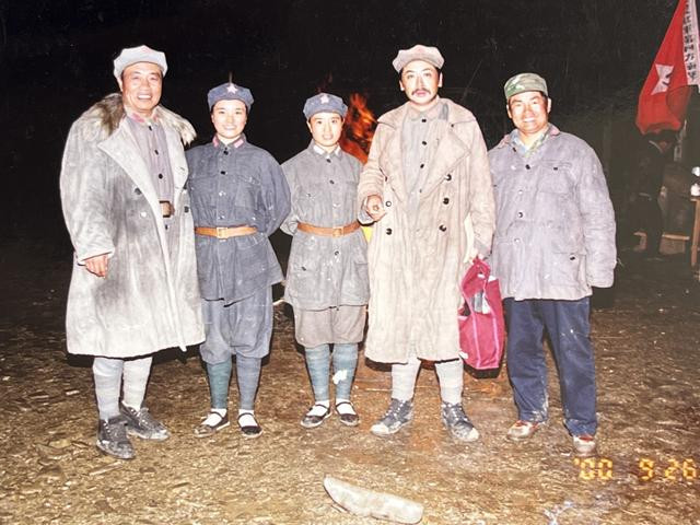 列尔初(左三)在《长征》拍摄现场跟刘劲等主创合影